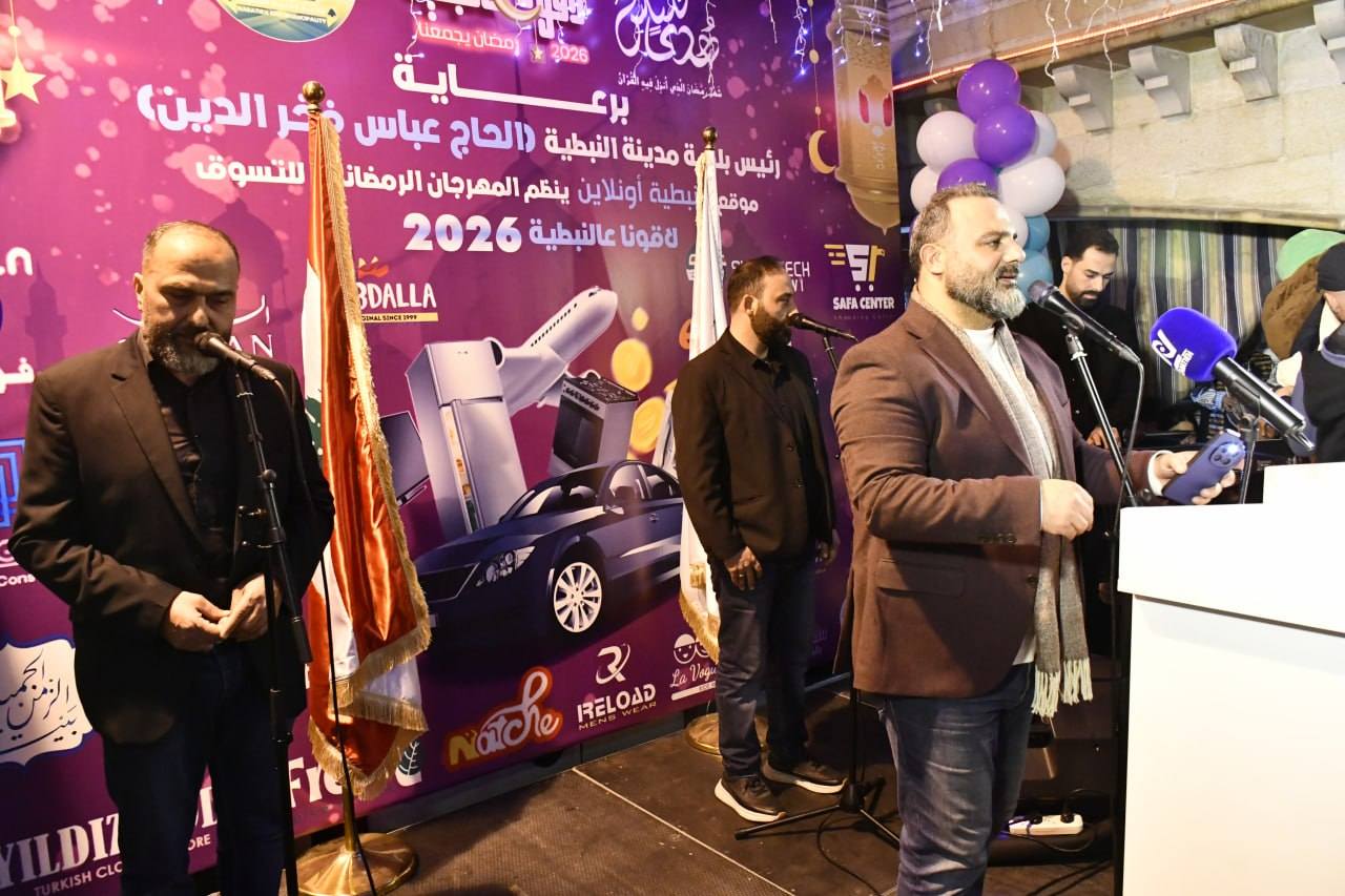 برعاية رئيس بلدية مدينة النبطية الحاج عباس فخر الدين، وبتنظيم موقع النبطية أونلاين، أُطلق مساء السبت 21 شباط 2026 المهرجان الرمضاني للتسوق «لاقونا عالنبطية 2026»، وذلك في مدخل حي السراي القديم، بحضور فاعليات اجتماعية واختيارية وحشد من أبناء المدينة والجوار. وتخلّل حفل الافتتاح تواشيح رمضانية قدّمها المنشد محمد محيدلي وفرقته، بالتزامن مع إنارة زينة شهر رمضان المبارك، في أجواء إيمانية واحتفالية مميّزة عكست روح الشهر الفضيل وأهميّة دعم الحركة التجارية في المدينة.